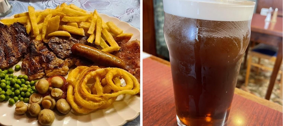 Definitely try the roast lamb and the fish and chips. For a sweet finish, the chocolate gateau and cream is a must.